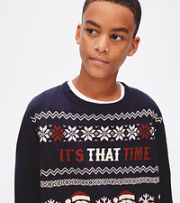 If you’re after something a little more subtle for Christmas Jumper Day, this navy oversized home for christmas sweatshirt from New Look is the perfect balance of festive without being the scrooge of the group.